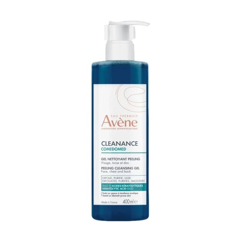Este gel limpiador exfoliante de la línea avène cleanance comedomed está diseñado especialmente para pieles grasas o con tendencia acneica que presentan imperfecciones persistentes, poros obstruidos, exceso de sebo y textura irregular. Su fórmula incorpora un dúo de ácidos queratolíticos —2 % de ácido láctico y 3 % de ácido succínico— para exfoliar suavemente la superficie de la piel y facilitar la renovación celular. También contiene 0,7 % de comedoclastin™, un activo vegetal patentado que ayuda a regular el sebo y a reducir la formación de puntos negros. Además, incorpora 0,1 % de zinc, con propiedades calmantes y reguladoras, y agua termal de avène, conocida por sus efectos calmantes y antiirritantes. Este gel convierte su textura acuosa en una espuma ligera al contacto con agua, lo que facilita su aplicación en rostro, cuello, torso o espalda, según la zona con imperfecciones. Por su ph fisiológico, fórmula sin jabón y adaptada para piel sensible, se trata de una opción adecuada tanto para adolescentes como para adultos con piel grasa o imperfecciones persistentes.